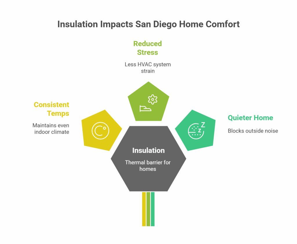 Proper attic insulation acts like a protective thermal barrier between your living area and the scorching air above. It helps maintain consistent indoor temperatures, reduces stress on your HVAC system, and makes your home quieter and more comfortable. Whether you live along the breezy coast of Oceanside or farther inland in Escondido or El Cajon, insulation is a key factor in keeping your San Diego home energy-efficient and comfortable year-round.