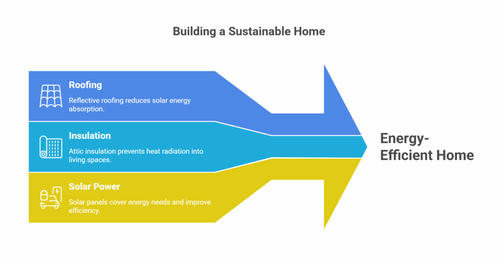 When it comes to home energy efficiency, insulation doesn’t work in isolation — it’s part of a complete system that includes your roof and solar power setup. Think of these three elements as a team: when they work together, your home becomes cooler, more efficient, and far less expensive to operate.